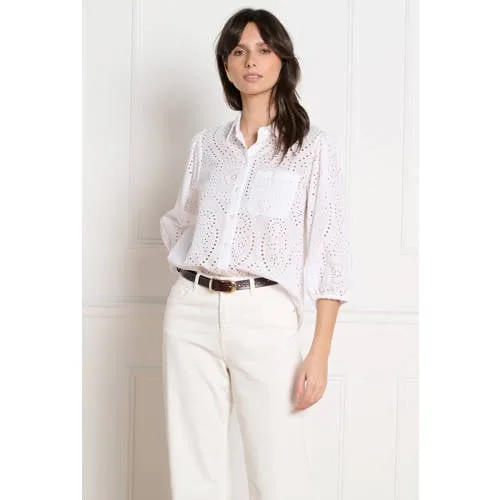 Deze witte broderie katoenen blouse van LOLALIZA zorgt direct voor een lichte en vrouwelijke uitstraling. De blouse is gemaakt van 100% katoen en voelt daardoor luchtig en prettig aan op de huid, ideaal voor warme dagen of een drukke werkdag. De fijne broderie en ajourdetails geven extra structuur, terwijl de losse pasvorm zorgt voor bewegingsvrijheid en een ontspannen look.Details die het verschil maken Gemaakt van 100% katoen, fijn voor de huid en aangenaam om te dragen Luchtige broderie en ajourdetails voor een verfijnde uitstraling Losse pasvorm met rechte mouwen voor een relaxed silhouet Klassieke kraag en volledige knoopsluiting aan de voorkant Effen witte kleur, makkelijk te combineren met jeans, rok of short Onderdeel van de dagelijkse collectie, passend bij alledaagse en casual looks Geen borstzakken of extra zakken voor een rustige, cleane voorkantLuchtige blouse voor zomerse dagenDeze blouse past goed bij een lichte jeans, linnen broek of een korte broek voor een zomerse stijl. Open gedragen over een top of gesloten met de knoopsluiting, de doorknoop maakt het makkelijk om te variëren met laagjes en silhouet.LOLALIZA: vrouwelijke stijl voor elke dagLOLALIZA staat bekend om modieuze items die vrouwelijkheid en draaggemak centraal zetten. De collecties spelen in op trends, maar blijven toegankelijk en geschikt voor elke dag. Met deze blouse kies je voor een betrouwbaar merk dat aandacht heeft voor detail, pasvorm en een prettige uitstraling in je dagelijkse garderobe.Een lichte blouse die je gemakkelijk pakt als je iets comfortabels en verzorgd wilt aantrekken.