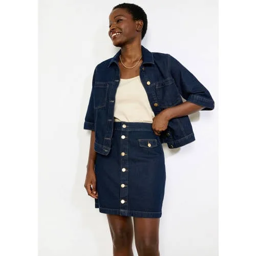 Maak je dagelijkse outfits compleet met deze denim minirok van LOLALIZA. De rok heeft een donkerblauwe wassing die makkelijk combineert met basics in je kast. Door de knoopsluiting aan de voorkant krijgt het model een moderne, rechte look. Gemaakt van 100% katoen biedt de stevige denim een vormvaste pasvorm tijdens het dragen.Details die je elke dag wilt dragen Donkerblauwe kleur in 'dark blue denim' voor een tijdloze uitstraling Middellange minirok, ideaal voor lente en frisse zomerdagen Knoopsluiting aan de voorkant voor een moderne denim look Regular waist die comfortabel in de taille valt Gemaakt van 100% katoen voor een stevige, prettig aanvoelende stof Met praktische zakken voor, handig voor kleine essentials Onderdeel van de 'Daily' collectie, geschikt voor alledaags gebruik Wasbaar op 30 graden, waardoor onderhoud eenvoudig blijftVan kantoor tot koffie dateDeze rok is een veelzijdige basis voor je garderobe. Draag hem met een wit T-shirt en sneakers voor een casual combinatie of kies voor een blouse en enkellaarsjes als je net iets gekleder wilt gaan. Een denim jasje of blazer erbij en je bent klaar voor werk, een lunchafspraak of een dagje shoppen.LOLALIZA voor elke dagLOLALIZA ontwerpt kleding die inspeelt op het dagelijks leven, met aandacht voor pasvorm, draagcomfort en een vrouwelijke stijl. De collecties sluiten aan op de laatste trends, maar blijven tegelijk toegankelijk en makkelijk te combineren met wat je al hebt. Zo bouw je stap voor stap aan een garderobe waar je lang mee doet.Een praktische rok voor dagen waarop je zonder moeite verzorgd voor de dag wilt komen.