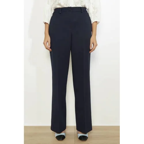 Deze LOLALIZA flared broek in donkerblauw is een praktische basis voor dagen waarop je er verzorgd uit wilt zien, zonder in te leveren op comfort. De lange, uitlopende pijpen zorgen voor een vloeiende lijn langs het been, terwijl de regular waist zorgt voor een prettige pasvorm rond de taille. Door de effen kleur is deze broek eenvoudig te combineren met tops, blouses en truien in verschillende stijlen.Details die het verschil maken Flared model met lange pijpen voor een gestroomlijnd silhouet Regular waist met rits- en knoopsluiting voor een nette uitstraling Voorzien van zakken voor en achter, plus sierzakken voor een geklede look Effen donkerblauwe kleur, makkelijk te combineren met basics en opvallende items Gemaakt van 92% polyester en 8% elastaan, wat zorgt voor lichte stretch en vormbehoudVan kantoor tot dinerDeze broek leent zich goed voor verschillende momenten van de dag. In combinatie met een blouse en hakken ontstaat een zakelijke outfit die netjes oogt. Met een T-shirt en sneakers krijgt de broek juist een meer casual uitstraling. Dankzij de flared pijpen vallen schoenen mooi onder de zoom.LOLALIZA: stijl met aandacht voor het dagelijks levenLOLALIZA ontwerpt kleding die aansluit op het tempo van alledag. De focus ligt op draagbare ontwerpen met een moderne pasvorm. Zo ontstaat mode die praktisch is in gebruik en tegelijkertijd verzorgd oogt, van drukke werkdagen tot ontspannen avonden.Een donkerblauwe flared broek als deze vormt een betrouwbare basis in je garderobe waar je vaak naar kunt grijpen.