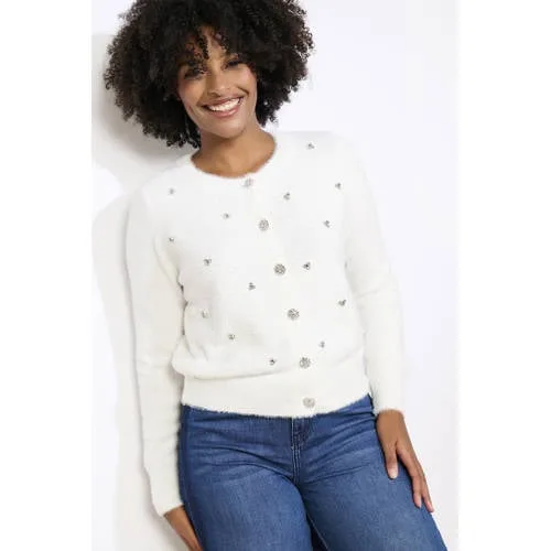 Dit vest van LOLALIZA heeft lange rechte mouwen en een ronde hals. Het is een gebreid vest met knoopsluiting, gemaakt van nylon. De 3D applicatie geeft een nette afwerking.