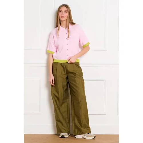 Dit gebreide vest met korte mouw voor dames van LOLALIZA is een moderne basis voor elke dag. De middel-lange lengte en de strakke snit zorgen voor een verzorgde uitstraling, terwijl de lichtroze kleur met groene accenten het geheel een frisse toets geeft. De polo kraag en knoopsluiting doen denken aan een nette polo, maar dan in een zachte, fijngebreide uitvoering.Verzorgde details voor elke dag Lichtroze/groen design met contrasterende bies voor extra karakter Polo kraag en volledige knoopsluiting voor een nette, maar ontspannen look Korte, rechte mouwen die prettig vallen op de bovenarm Fijngebreide kwaliteit met viscose en polyamide, voelt soepel en zacht aan Geribde boorden bij hals, mouwen en zoom voor een mooie aansluiting Effen ontwerp zonder zakken voor een rustige, strakke uitstraling Wasbaar op 30 graden, praktisch in onderhoudStyling van kantoor tot casualDraag het vest solo als top op een high waist jeans of pantalon, of open over een basic T-shirt of mouwloze top. De lichtroze tint past mooi bij denim, wit, ecru of zachte groentonen, waardoor het vest makkelijk te combineren is in je dagelijkse garderobe, zeker in het voorjaar.LOLALIZA: dagelijks vrouwelijk en modernLOLALIZA ontwerpt mode die vrouwelijkheid en comfort combineert met een eigentijdse stijl. De collecties zijn afgestemd op het dagelijks leven, met items die goed te combineren zijn en prettig dragen. Zo bouw je stap voor stap een garderobe op waar je vaak naar grijpt.Een stijlvolle basic die je het hele seizoen door blijft dragen.