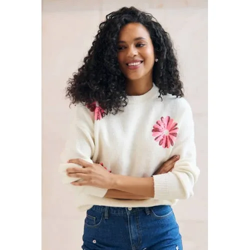 Deze trui van LOLALIZA heeft lange rechte mouwen en een ronde hals. De trui is gemaakt van polyester, acryl, wol en elastaan. Je ziet borduursels op de stof, wat zorgt voor een speelse look.