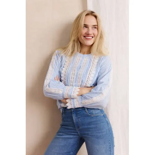 Een lichte, vrouwelijke laag voor al je dagelijkse momenten, dat is deze LOLALIZA blouse. De blouse is gemaakt van 100% katoen en voelt soepel en luchtig aan op de huid. Het verfijnde streepmotief wordt gecombineerd met subtiele kantdetails en borduursels, wat samen zorgt voor een romantische, moderne uitstraling. Dankzij de lange mouwen en klassieke kraag is dit een blouse die je zowel casual als gekleed kunt dragen.Verfijnde details in een tijdloos ontwerp Gemaakt van 100% katoen voor een zacht en ademend draaggevoel Streeppatroon dat de blouse een frisse en stijlvolle uitstraling geeft Kantdetails en borduursels voor een subtiele, vrouwelijke touch Lange, rechte mouwen die mooi langs de armen vallen Knoopsluiting aan de voorkant en klassieke kraag voor een nette afwerking Zonder borstzakken voor een rustige, elegante voorkantMakkelijk te stylen, van kantoor tot weekendDeze blouse laat zich eenvoudig combineren met je favoriete jeans voor een ontspannen look, of met een nette broek voor een meer geklede outfit. De lange mouwen maken het een fijne keuze voor het tussenseizoen of voor op kantoor, terwijl het lichte katoen ook prettig is op warmere dagen.LOLALIZA: vrouwelijk en eigentijdsLOLALIZA richt zich op mode die vrouwelijkheid en comfort samenbrengt. De collecties spelen in op trends, maar blijven tegelijkertijd toegankelijk en draagbaar voor elke dag. Met deze blouse haal je een doordacht ontworpen kledingstuk in huis dat past bij een moderne, stijlvolle garderobe.Een elegante blouse waarmee je in één keer verzorgd en moeiteloos gekleed bent.
