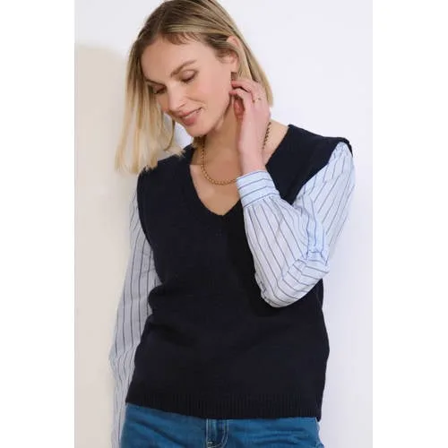 Deze LOLALIZA gebreide body met poplinmouwen geeft je in één keer een gelaagde look, zonder dat je hoeft te stapelen. De gebreide body sluit mooi aan op je bovenlichaam, terwijl de geweven poplinmouwen zorgen voor het effect van een blouse onder een trui. De streepprint en V-hals maken het een veelzijdige top die je zowel naar je werk als in je vrije tijd kunt dragen.Gelaagd effect in één kledingstuk Gemaakt van 58% polyester, 30% acryl, 10% wol en 2% elasthaan voor een zachte, soepel vallende body Ingebouwde poplinmouwen met rechte lange mouwen voor een verzorgd, blouse-achtig effect V-hals die het hals- en decolletégebied subtiel accentueert Streepprint voor een moderne, maar tijdloze uitstraling Geen zakken voor een glad en clean silhouet onder broeken en rokkenIdeaal voor kantoor en casual dagenDeze top is handig op dagen waarop je er netter uit wilt zien, maar geen zin hebt in meerdere lagen. De body blijft goed op zijn plek in je tailleband, waardoor je geen last hebt van opkruipende stof. Combineer met een nette broek voor een zakelijke look of met een jeans voor een meer ontspannen outfit.De stijl van LOLALIZALOLALIZA ontwerpt kleding waarin je je de hele dag verzorgd voelt, zonder dat het ingewikkeld hoeft te zijn. Met aandacht voor pasvorm en vrouwelijk detail biedt het merk items die goed aansluiten bij het dagelijks leven, van werkafspraken tot drukke dagen onderweg.Een praktische, gelaagde top die je garderobe direct meer mogelijkheden geeft.
