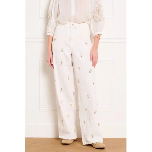 Deze witte wide leg jeans van LOLALIZA geeft je garderobe een frisse update. De lange broek heeft wijde pijpen en een high waist, waardoor je taille duidelijk wordt geaccentueerd en je benen extra lang lijken. Subtiele borduursels langs de pijpen zorgen voor een rustig dessin dat dit model onderscheidt van een basic jeans.Details die het verschil maken Gemaakt van 100% katoen voor een stevige, toch soepele stof High waist model dat hoog in de taille valt Wijde pijpen voor een ontspannen silhouet Subtiele borduursels voor een verzorgde afwerking 5-pocket model met praktische zakken Rits- en knoopsluiting aan de voorkant Riemlussen zodat je eenvoudig een riem kunt toevoegen Wasbaar op 30 graden voor gemakkelijk onderhoud Dit artikel valt klein, een maat groter wordt geadviseerdVoor ontspannen outfits op iedere dagDe witte kleur en wijde pijpen maken deze jeans geschikt voor lichte, dagelijkse looks in het voorjaar. Combineer met een eenvoudig T-shirt en sneakers voor een casual dag, of met een blouse en sandalen voor een nettere outfit. De losse snit geeft je bewegingsvrijheid en blijft tegelijk netjes in model.LOLALIZA: moderne stijl voor elke dagLOLALIZA ontwerpt kleding met een moderne stijl en vrouwelijke pasvormen, afgestemd op het dagelijks leven. In de collectie komen draagbare modellen en actuele kleuren samen, zodat je gemakkelijk combinaties maakt die de hele dag goed zitten.Een witte basisjeans die je het hele seizoen kunt dragen.