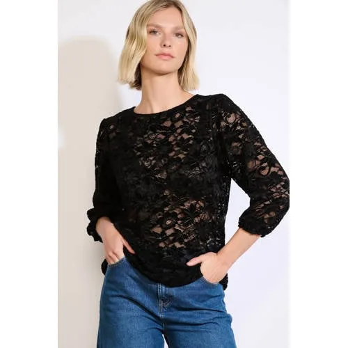 Deze top van LOLALIZA heeft driekwart mouwen en een ronde hals. De top is gemaakt van kant. Met rechte mouwen en een open uitstraling draag je dit makkelijk iedere dag.