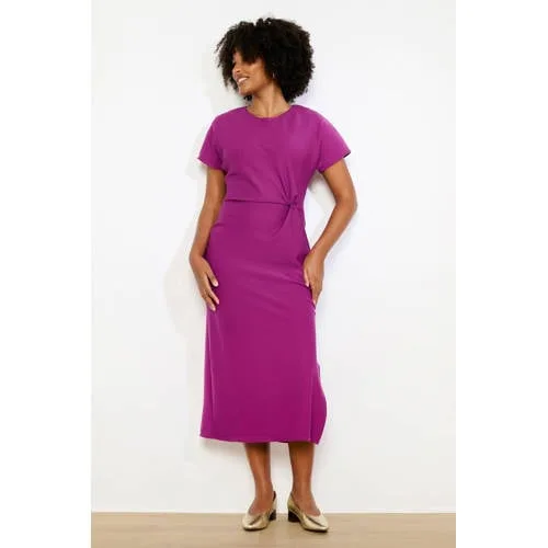 Voor een moeiteloos geklede look is deze LOLALIZA gedrapeerde midi jurk een geschikte keuze. De vloeiende midi-lengte, zachte plooien aan de voorkant en subtiele split geven een verzorgde uitstraling die ook in het dagelijks leven goed werkt. De effen violine kleur zorgt voor een rustige basis die je kunt combineren met je favoriete sandalen, sneakers of laarsjes.Details die je elke dag kunt dragen Midi-jurk met middelhoge lengte, valt rond de kuit voor een vrouwelijk silhouet Zachte plooidetail aan de voorkant dat mooi langs het lichaam valt Subtiele split voor net wat extra bewegingsvrijheid Korte rechte mouwen, geschikt voor het voorjaar en warme dagen Ronde hals voor een rustige vormgeving Knoopsluiting op de rug voor een nette afwerking Soepelvallend materiaal met viscose en een beetje elasthaan voor lichte stretch Effen ontwerp in violine kleur, te stylen met sieraden en accessoires Geschikt voor dagelijks gebruik uit de 'Daily' collectie Wasbaar op 30 graden, handig in het onderhoudVan werkdag tot weekendDeze midi-jurk past goed bij drukke dagen waarop je weinig tijd hebt om na te denken over je outfit. Met een blazer en nette loafers is de jurk direct geschikt voor kantoor. Wissel je naar een denim jasje en sneakers, dan heb je een casual look voor een lunchdate of stadswandeling.LOLA LIZA: stijl voor elke dagLOLA LIZA ontwerpt kleding die je helpt om je persoonlijkheid op een toegankelijke manier te laten zien. De collecties combineren draagbare modellen met vrouwelijke details, zodat je eenvoudig een complete outfit samenstelt die aansluit bij jouw stijl.Een midi-jurk die je garderobe het hele seizoen door aanvult.