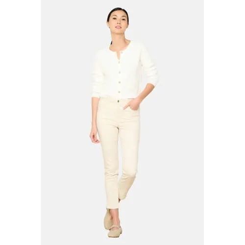Deze damesjeans van LOLALIZA heeft een regular waist en een knoopsluiting. Gemaakt van stretchy denim voor extra comfort. De jeans is ecru van kleur en heeft een cropped lengte met een straight leg pasvorm en ritsen aan de broekspijpen.