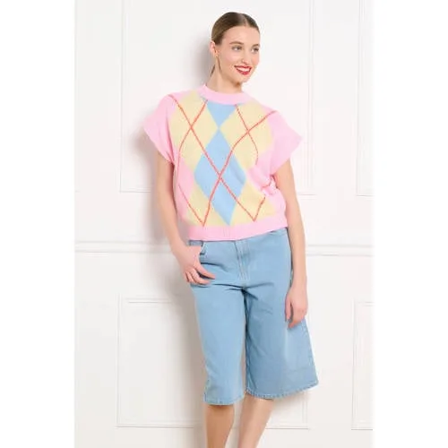Geef je dagelijkse outfits een frisse update met deze lichtroze dames trui met korte mouwen van LOLALIZA. De trui heeft een moderne, korte lengte en een subtiel grafisch ruitpatroon in lichtroze, blauw en geel. De combinatie van kapmouwen en ronde hals geeft een lichte uitstraling die goed past bij het seizoen. De zachte stof valt soepel om het lichaam en maakt dit model ideaal voor lenteweer of voor laagjes.Praktische details voor elke dag Korte trui met kapmouwen, geschikt voor een luchtige, moderne look Grafisch ruitpatroon in lichtroze/blauw/geel voor een subtiel grafisch effect Geribde boorden zorgen voor een nette afwerking en een aansluitende pasvorm Gemaakt van 78% acryl / 22% polyamide voor een zachte, comfortabele touch Wasbaar op 30 graden, praktisch in onderhoud Spencer-model zonder zakken, makkelijk te combineren met verschillende stijlenHoe combineer je deze korte truiDeze korte trui uit de Daily collectie sluit mooi aan op een high waist jeans of een rechte pantalon. Ook boven een rok met hoge taille komt de lengte goed tot zijn recht. Draag de trui solo op mildere dagen of over een fijn T-shirt of top als extra laagje.LOLALIZA als stijlvolle basisLOLALIZA staat bekend om modieuze items die geschikt zijn voor alledaagse momenten. De collecties combineren actuele trends met draagbare modellen in standaardmaten. Deze trui sluit daar goed op aan en biedt een toegankelijke manier om kleur en patroon toe te voegen aan je garderobe.Een lichte, grafische trui die je eenvoudig meeneemt van een werkdag naar een ontspannen moment.