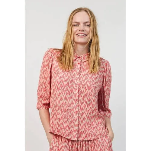 Breng kleur in je garderobe met deze roze viscose dames top van Lollys Laundry. De top valt op door de all over print en de vrouwelijke pasvorm. De stof voelt soepel en licht aan, wat fijn is op mildere dagen in de lente en de rest van het jaar. Door de combinatie van pofmouwen en een klassieke kraag heeft deze top een uitgesproken, maar toch toegankelijke uitstraling.Kenmerken van deze top Gemaakt van 100% viscose, een zachte en soepelvallende stof All over print in roze tinten die direct in het oog springt Driekwart pofmouwen voor een luchtig en modern silhouet Klassieke kraag die zorgt voor een nette, verzorgde uitstraling Geen zakken voor een gladde voorkant Onderdeel van de Boutique collectie, in standaardmatenVeelzijdig te combineren in jouw dagelijkse looksDeze top draag je makkelijk naar je werk, een etentje of een dagje weg. Combineer met een jeans voor een ontspannen outfit of kies een wijde pantalon voor een meer geklede stijl. De driekwartmouw maakt de top geschikt voor het voorjaar, maar met een blazer erover kan hij ook goed mee de koelere seizoenen in.Lollys Laundry: speelse prints en doordachte ontwerpenLollys Laundry staat bekend om eigentijdse collecties met veel aandacht voor print en detail. De ontwerpen zijn gemaakt om vaak en lang te dragen, met kleuren en dessins die je kledingkast direct meer karakter geven. Deze top sluit daar mooi op aan en biedt een basis voor talloze combinaties.Een uitgesproken, maar makkelijk te combineren top voor alledaagse en bijzondere momenten.