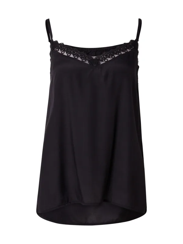 Blouse type: Blouseshirt; Design: Gevoerde zoom/rand, Uitgesneden rug; Materiaal: Viscose; Halstype: V-hals; Motief: Effen; Kraag: Zonder kraag; Soort bandjes: Spaghettibandjes; Details: Kant, Gedrapeerd; Extra's: Verstelbare bandjes, Op staal naden, Voelt zacht aan; Pasvorm: Normale pasvorm; Armlengte: Mouwloos; Lengte: Normale lengte