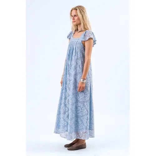 Deze MilanLL Midi DressSL van Lollys Laundry is perfect voor zomerdagen. De jurk heeft korte mouwen, een vierkante hals en is gemaakt van katoen. De lange jurk in lichtblauw heeft kanten details voor een elegante touch.