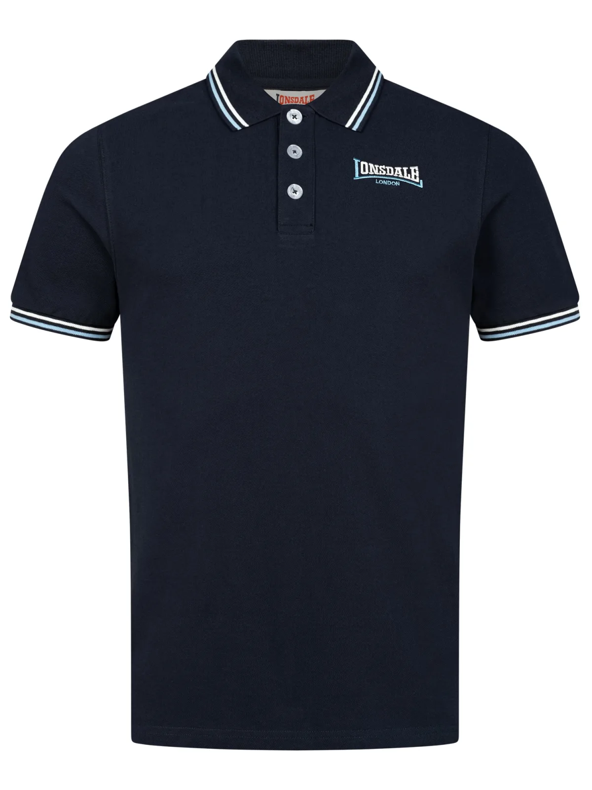 Ch polo met twee streepjes in verschillende kleuren op de kraag en de mouwen. Er zijn verschillende borduursels Lonsdale op de linkerborst en de rechtermouw, die de kleuren van de kraag en de mouwen herhalen. De knoopsluiting kan worden geopend en gesloten met knopen. Er is een geweven label op de zijnaad.Kwaliteit: 100% gekamd katoenStof: Piqué