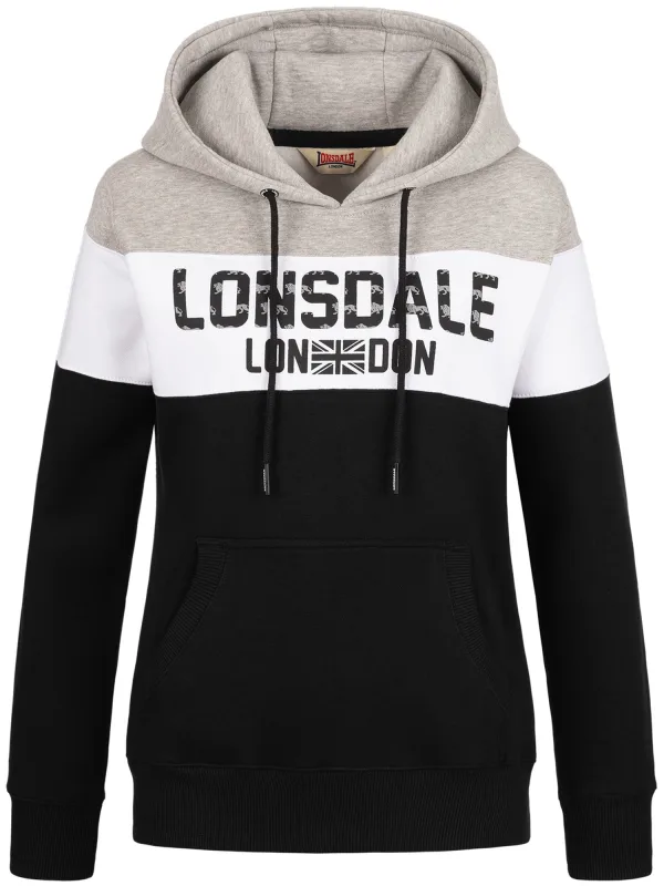 Capuchon voor dames Modelbeschrijving: hoodie met panelen in verschillende kleuren en Lonsdale letters op de borst. Kwaliteit: 80% gekamd katoen, 20% polyester Stof: fleece (geborstelde achterkant) Kwaliteit: 80% gekamd katoen, 20% polyester 80% gekamd katoen, 20% polyester80% gekamd katoen, 20% polyester