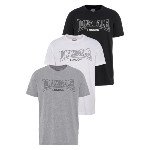 Lonsdale T-Shirt Beanley T-Shirt normale Passform Dreierpack Black/White/Marl Grey-M