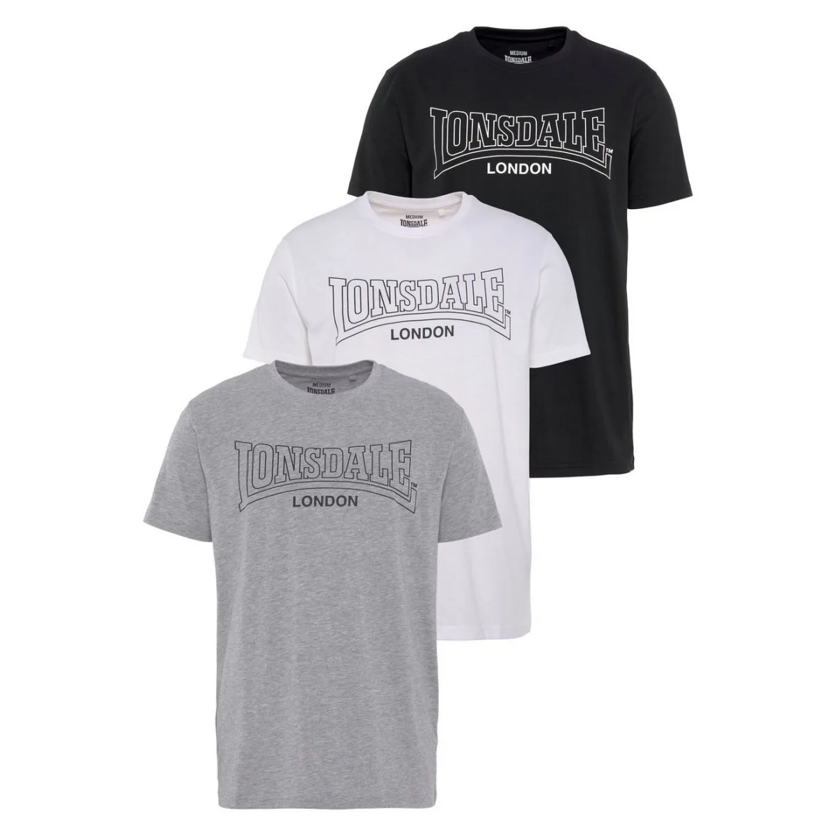 - De laagste prijs van Lonsdale T-Shirt Beanley T-Shirt normale Passform Dreierpack Black/White/Marl Grey-M werd gevonden op 26 april 2026 14:15.