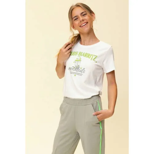 Dit LOOXS 10sixteen T-shirt voor meisjes is een praktische basic met een speels detail. De witte basis in combinatie met groene details en printopdruk geeft een frisse, moderne look die makkelijk te combineren is met jeans, rok of short. De rechte korte mouwen en ronde hals zorgen voor een ontspannen pasvorm, geschikt voor schooldagen en vrije tijd.Frisse look en prettig draagcomfort Zachte stof van 52% katoen en 48% modaal, die soepel aanvoelt op de huid Korte mouwen en ronde hals voor een luchtig en comfortabel gevoel Printopdruk aan de voorkant voor een opvallend detail Geen sluiting, het shirt trek je eenvoudig over het hoofd Geschikt voor dagelijks gebruik dankzij de eigentijdse pasvorm Wasbaar op 30 graden, lauw strijkbaar en niet geschikt voor de droogtrommelDagelijks te dragen T-shirtDit meisjes T-shirt past bij veel momenten op de dag. Of het nu gaat om een gewone schooldag, een speelafspraak of een dagje weg, het shirt biedt genoeg bewegingsvrijheid en blijft dankzij de comfortabele stof prettig aanvoelen.LOOXS 10sixteen: speels en eigentijdsLOOXS 10sixteen staat voor mode met een eigen stijl. De collecties combineren herkenbare basics met speelse details, zodat elk item makkelijk te dragen is en net even anders oogt. Met dit T-shirt kies je voor een toevoeging aan de kledingkast die past bij alledaagse momenten.Een T-shirt dat moeiteloos meegaat in het drukke, gezellige leven van elke schooldag.
