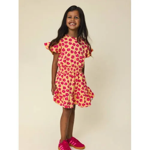LOOXS little gebloemde sweatjurk roze