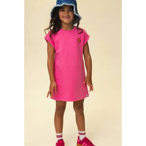 Deze LOOXS little meisjesjurk is gemaakt voor dagen vol beweging, spel en gemak. De roze jurk heeft het ontspannen gevoel van een sweatjurk, maar oogt licht en zomers. De soepele jersey voelt zacht aan op de huid en beweegt makkelijk mee, zodat je kind vrij kan rennen, klimmen en dansen. De ronde hals en het rechte model geven een rustige basis, terwijl de backprint voor een speels detail aan de achterkant zorgt.Fijne details voor elke dag Zachte jersey kwaliteit die comfortabel aanvoelt Korte, wijde mouwen met oprolfunctie voor een relaxte look Zonder sluiting, je kind trekt de jurk simpel over het hoofd aan Roze kleur die makkelijk te combineren is met sneakers of sandalen Backprint aan de achterzijde voor een extra detail Geschikt als korte jurk, sweatjurk of zomerjurk Wasbaar op 30 graden en lauw strijkbaar Niet drogen in de droogtrommel, zo blijft de stof langer mooiSpeels en comfortabel voor peuter tot schoolkindDeze jurk is ideaal voor peuters, kleuters en schoolkinderen die graag zelf hun outfit aantrekken. Geen ritsen of knopen, maar gewoon instappen en klaar. De wijde mouwtjes geven genoeg ruimte om te bewegen en voelen luchtig op warmere dagen.LOOXS little, mode met een knipoogLOOXS little staat bekend om kinderkleding met een eigentijdse uitstraling en speelse details. De collecties volgen de laatste trends, maar blijven altijd praktisch en draagbaar voor elke dag. Zo krijgt je kind een comfortabel item dat geschikt is voor school, spelen of een dagje weg.Een speelse jurk die er verzorgd uitziet en tegelijk helemaal klaar is voor actief kindergebruik.