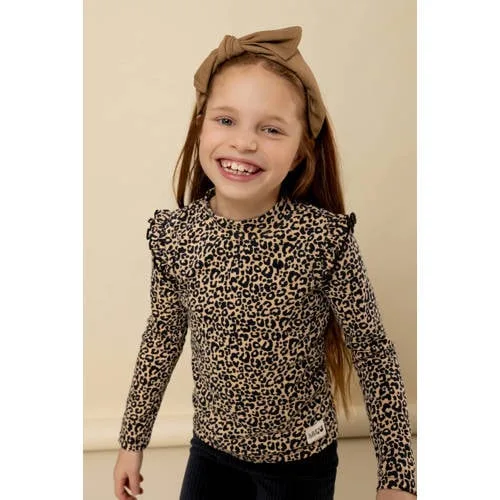 Deze LOOXS little longsleeve heeft lange mouwen en een ronde hals. De top is gemaakt van katoen met een beetje elastaan. Ruches geven een speelse touch aan de mouwen en hals.