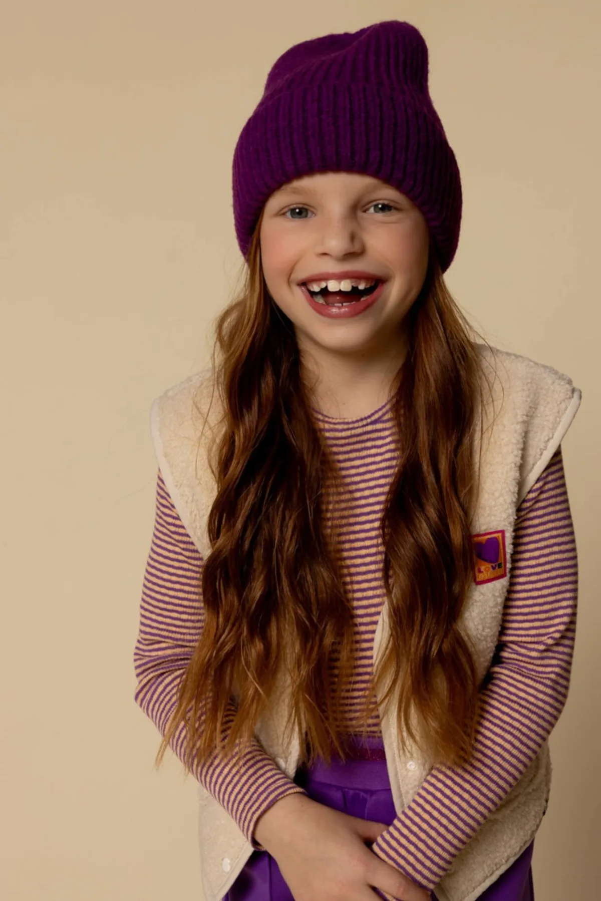 Mooi t-shirt in een wat zwaardere katoenen rib jersey kwaliteit, perfect voor in het najaar en de winter. Offwhite basis kleur met een paars fijn streepje die perfect matcht in deze eerste drop van Looxs Little. Slanke fit en een comfy lange lengte.