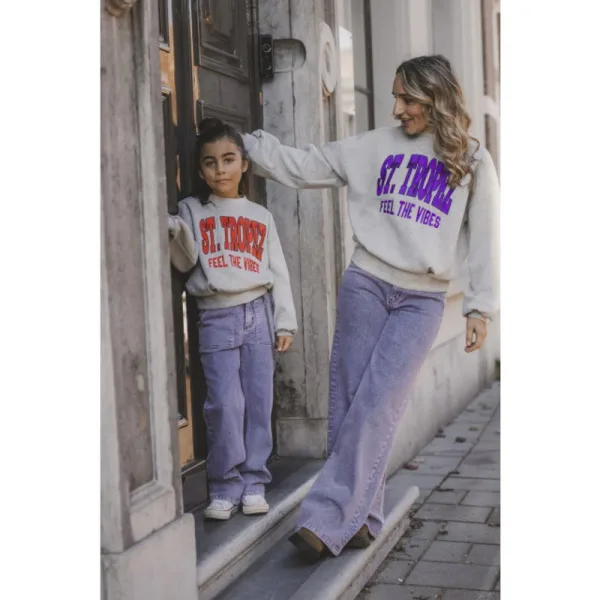 Cool denim broekje met een stylisch straight leg. Fancy grote zakken. Heerlijke comfy denim stof met stretch. TWINNING ITEM! Elastisch stuk op de rug voor extra draag comfort. Stoere ketting wordt er los bijgeleverd.