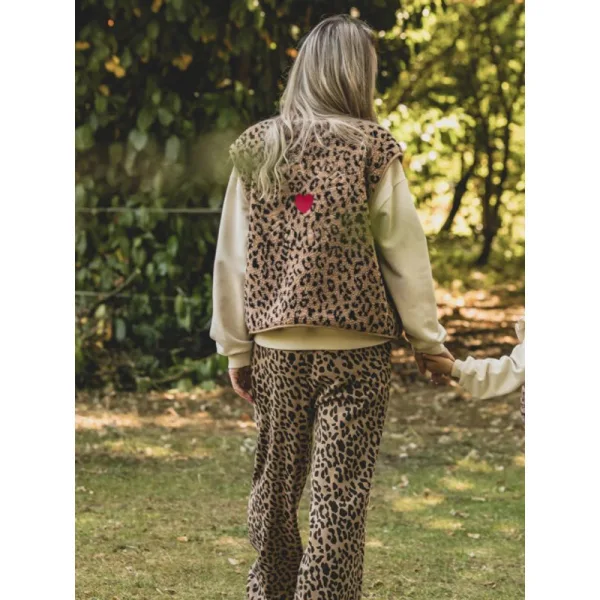 TWINNING ITEM! Helemaal "The Bomb" is het grote borduur artwork op de rug in alle kleuren van dit blok. Super cool dit loose fit teddy gilet in Leopard dessin. Gevoerd met bruine matching fleece voering. Voorzien van zakjes en een fancy badge.