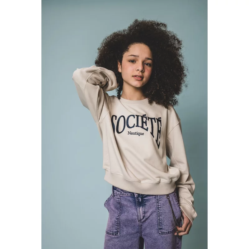 Coole sweater met een mooi navy borduursel op de borst. Iets cropped fit, boord valt net op je broekband. Loose-fit shape.