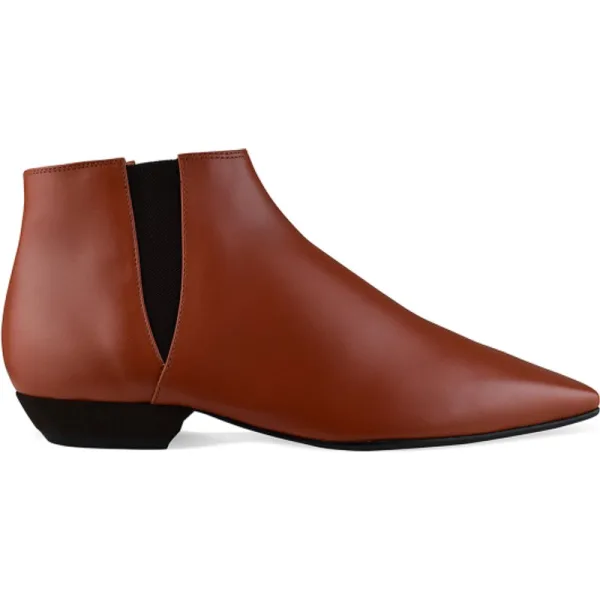 Sumire laarzen Loro Piana van terracotta rood glad kalfsleer.Zwart elastiek aan de zijkanten.Puntige teen.Leren zool.Kleine bruine suède hak van 2,5 cm.Made in Italy.