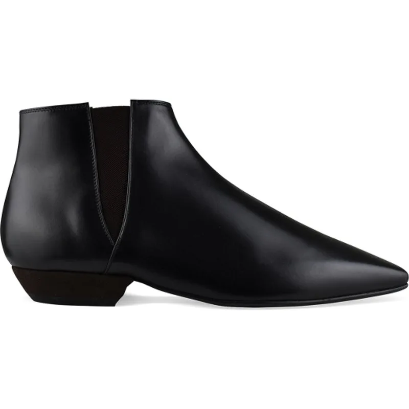Sumire laarzen Loro Piana van glad zwart kalfsleer.Zwart elastiek aan de zijkanten.Puntige teen.Leren zool.Kleine bruine suède hak van 2,5 cm.Made in Italy.