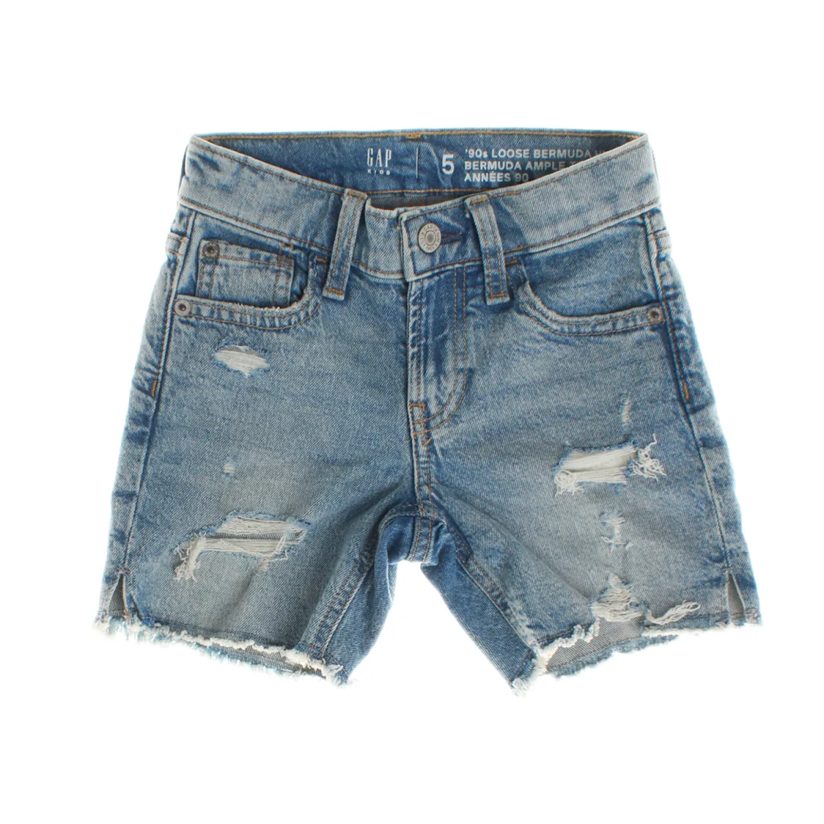 Een denim bermuda voor meisjes, gemaakt van een stretchstof die comfort en bewegingsvrijheid garandeert, met een ruimvallende snit die zorgt voor een ontspannen pasvorm. Met knoopsluiting aan de voorkant (in de maten 4-8 met haakje en beugel onder een faux drukknoop) en een gulp met rits. Het klassieke five-pocket ontwerp en de medium denim wassing geven het een relaxte look. De gerafelde zoom zorgt voor een moderne, casual touch, perfect voor elke gelegenheid. Samenstelling: 99% Katoen, 1% Elastaan Onderhoud: - Machinewas koud. - Gebruik gelijkaardige kleuren in de was. - Vermijd het gebruik van bleekmiddelen. - Drogen op lage temperatuur in de droger. - Strijken op lage temperatuur. - Niet chemisch reinigen.