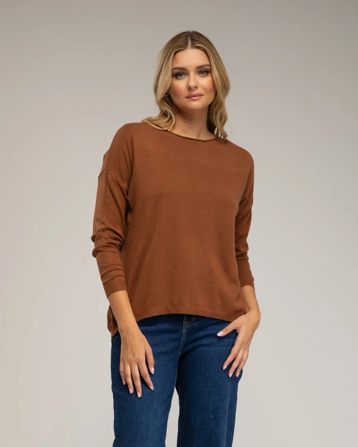 Brede fijn gebreide trui met ronde halslijn