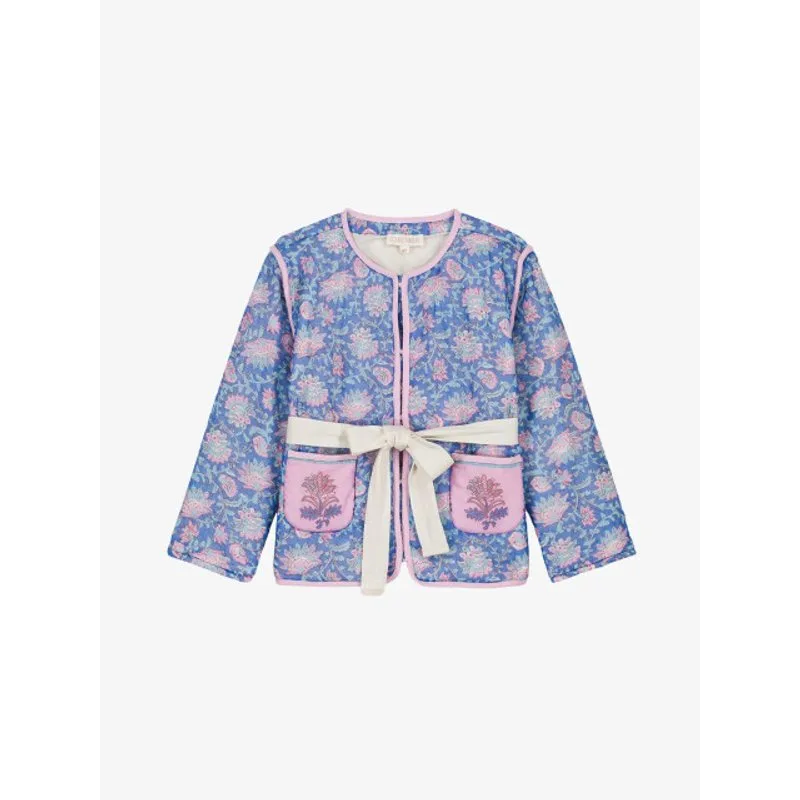 Prachtige bohemien gewatteerde zomer jas in een mooie blauwe print. Exclusieve bohemien meisjeskleding van Louise Misha. De kinderkleding van Louise Misha is verkrijgbaar vanaf maar 92 t/m maar 140.