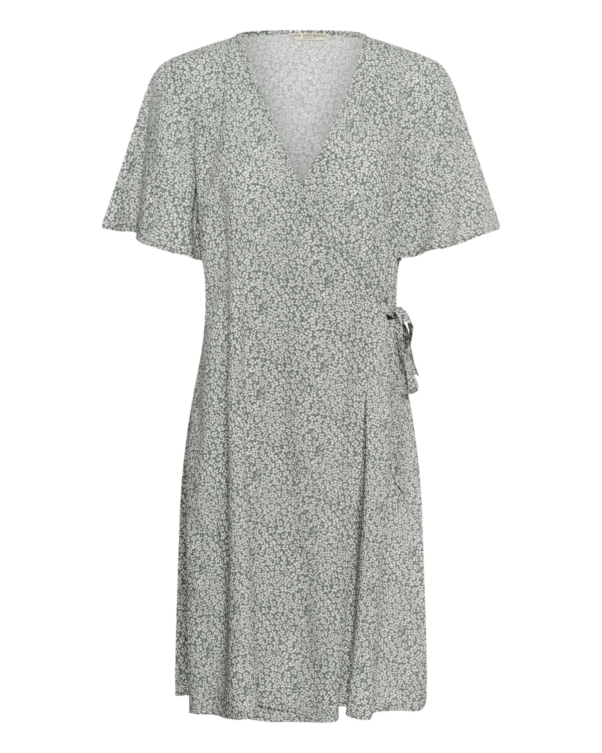 Materiaal: Viscose; Halstype: V-hals; Motief: Bloemenprint; Soort bandjes: Normale bandjes; Details: Wikkel design; Extra's: All-over patroon; Lengte: Knielengte; Pasvorm: Normale pasvorm; Armlengte: Kwartmouw