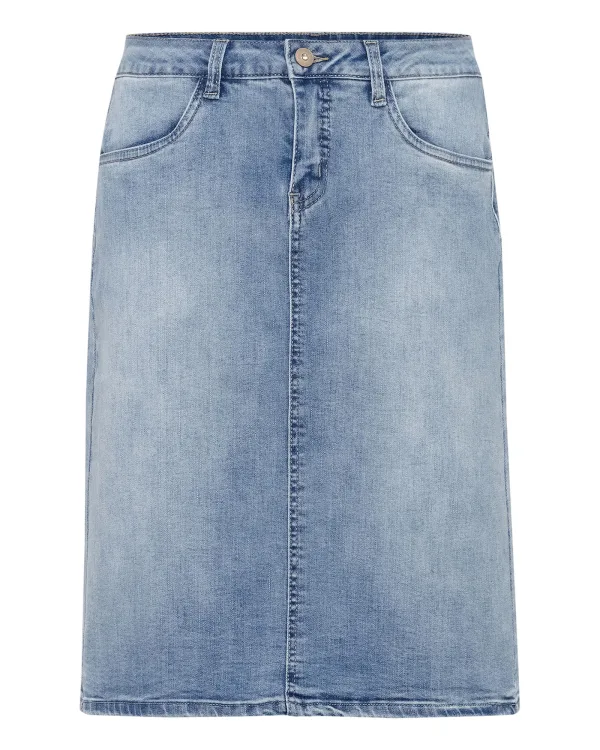 Design: Gevoerde zoom/rand, Zakken aan de zijkant; Type sluiting: Ritssluiting; Materiaal: Denim; Motief: Effen; Rokvorm: A-lijn rok; Extra's: Contrasterende naden, Gewassen effect; Lengte: Knielengte; Pasvorm: Normale pasvorm