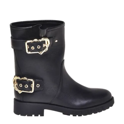 Love Moschino Daily Biker leren bikerboots zwart