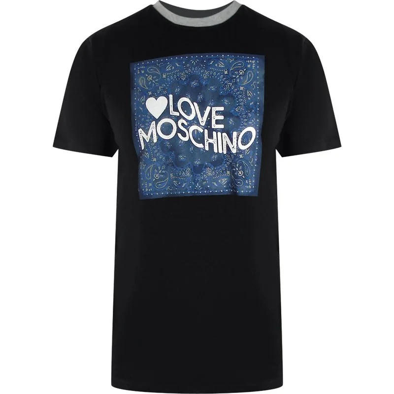 Love Moschino Paisley Print Logo Zwart Tshirt