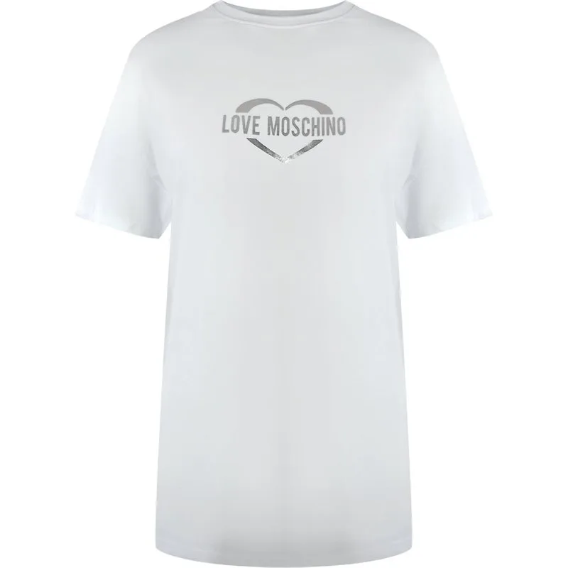Love Moschino Shiny Heart Logo White T-shirt
