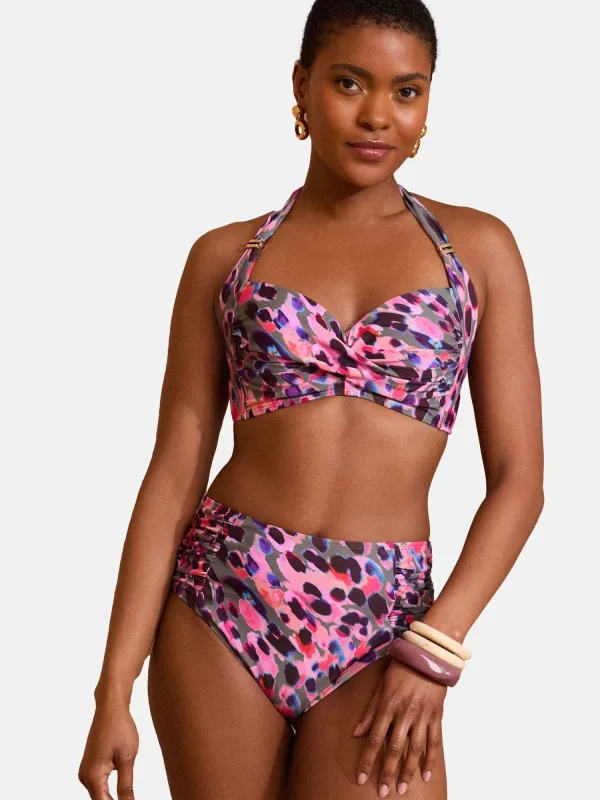 Cup soorten: Demi cup bh; Soort bandjes: Halterbandjes; Beugel: Zonder beugel; Motief: Dierenprint; Broekvorm: High waist; Details: Gedrapeerd; Extra's: All-over patroon