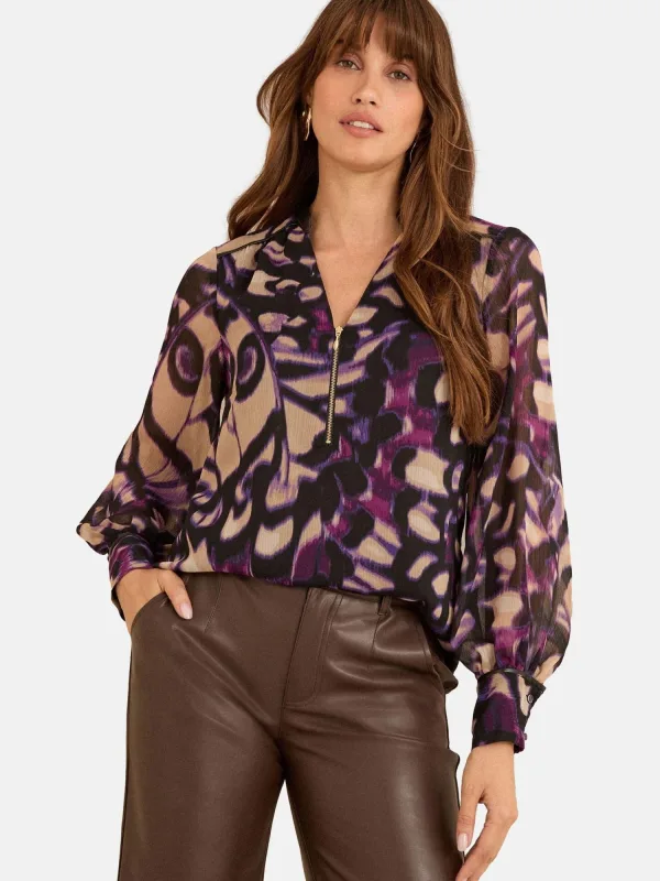 Blouse type: Wijde blouse; Design: 2-knoops manchetten, Gevoerde zoom/rand, Rugplooi; Type sluiting: Ritssluiting; Details: Kant, Borduursels, Gedrapeerd, Mesh; Extra's: All-over patroon; Pasvorm: Normale pasvorm; Armlengte: Lange mouw; Lengte: Normale lengte