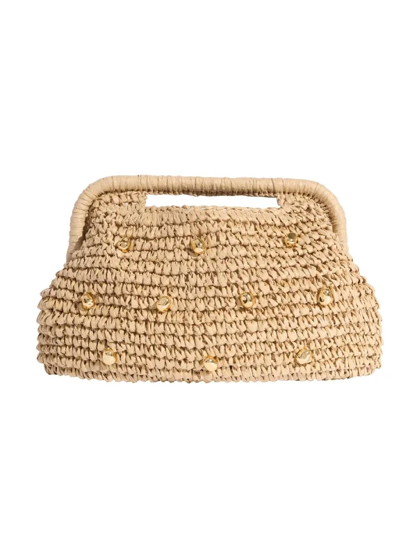 Design: Binnenzak; Type sluiting: Open; Motief: Effen; Materiaal: Stro materiaal; Extra's: Applicaties, Met textuur; Maat: Klein