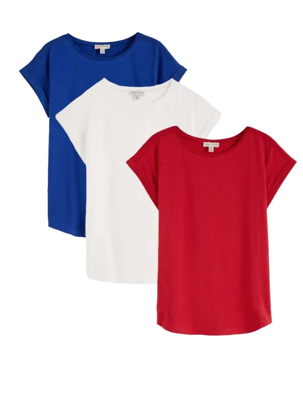 Design: Gevoerde zoom/rand; Materiaal: Jersey; Halstype: Ronde hals; Motief: Effen; Extra's: Voelt zacht aan; Pasvorm: Normale pasvorm; Aantal: 3 Pack; Armlengte: Kwartmouw; Lengte: Normale lengte