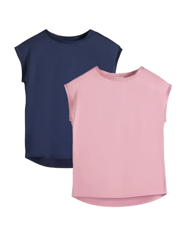 Design: Gevoerde zoom/rand, Gesneden mouw, Nektape; Type sluiting: Slip; Materiaal: Satijn; Halstype: Ronde hals; Motief: Effen; Extra's: Op staal naden; Pasvorm: Normale pasvorm; Aantal: 2 Pack; Armlengte: Kwartmouw; Lengte: Normale lengte