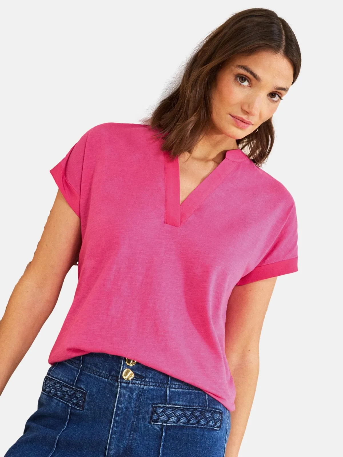 Design: Gesneden mouw; Materiaal: Jersey; Halstype: Uitgesneden hals; Motief: Mélange; Extra's: Voelt zacht aan; Pasvorm: Normale pasvorm; Armlengte: Kwartmouw; Lengte: Normale lengte