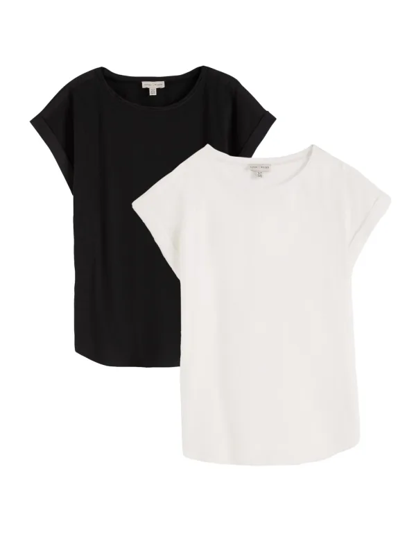 Design: Gevoerde zoom/rand; Materiaal: Jersey; Halstype: Ronde hals; Motief: Effen; Extra's: Label patch/label flag, Op staal naden, Voelt zacht aan; Pasvorm: Normale pasvorm; Aantal: 2 Pack; Armlengte: Kwartmouw; Lengte: Normale lengte