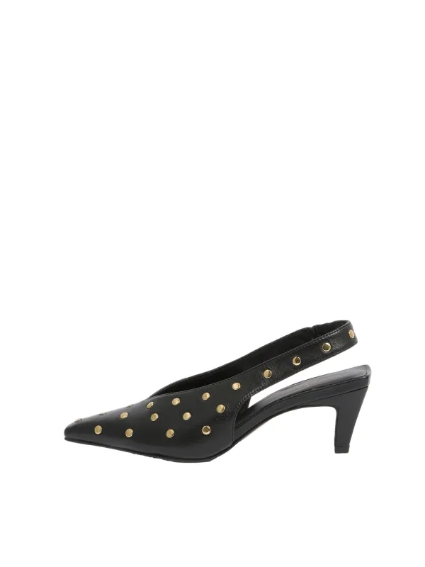 Design: Pumps met enkelbandje, Elastische inserts; Type sluiting: Slip; Type hak: Stiletto; Materiaal: Leer; Materiaal: Glad leer; Schoenneus: Spitse neus; Extra's: Studs, Stevige stof; Hakhoogte: Middelhoge hak (3-7 cm)