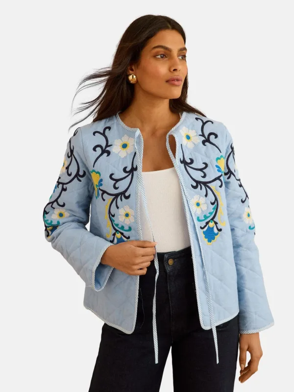 love & roses Tussenjas lichtblauw / geel / zwart / wit Prijzen