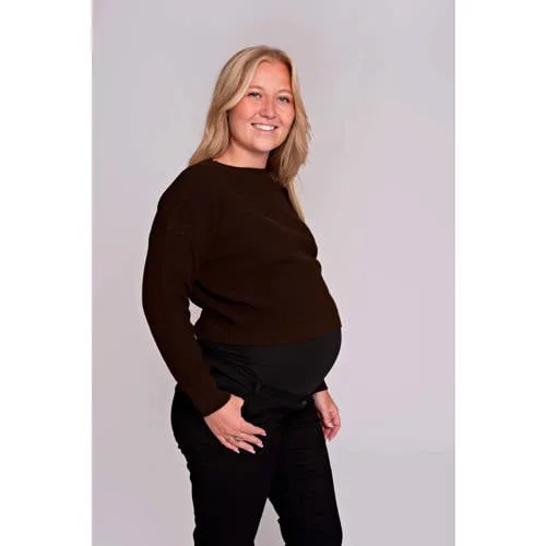 LOVE2WAIT gebreide cropped zwangerschaps trui bruin