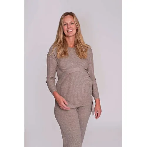LOVE2WAIT zwangerschaps longsleeve beige rib gebreid