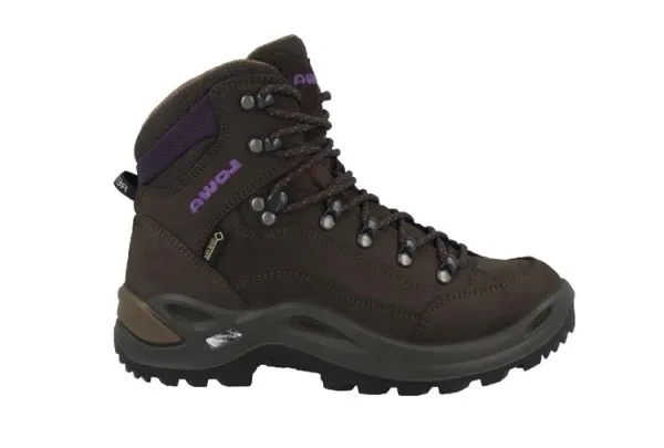 Wandelschoenen van het topmerk Lowa. Kenmerken van deze schoenen zijn: Artikel Renegade GTX Mid W'S.Artikelnummer 321945.Kleurnummer 7937 Slate BlackberryKleur Bruin.Materiaal Nubuck.Uitneembaar voetbed.GoreTex, waterdicht en ademend.Vibram onderwerk.